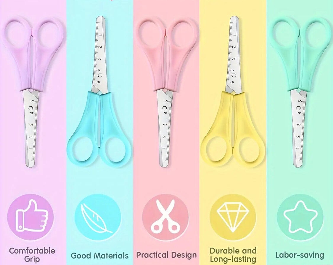 Mixed Colors Stainless Steel Safety Scissors ideal for Home, Office and School Supplies 1pc